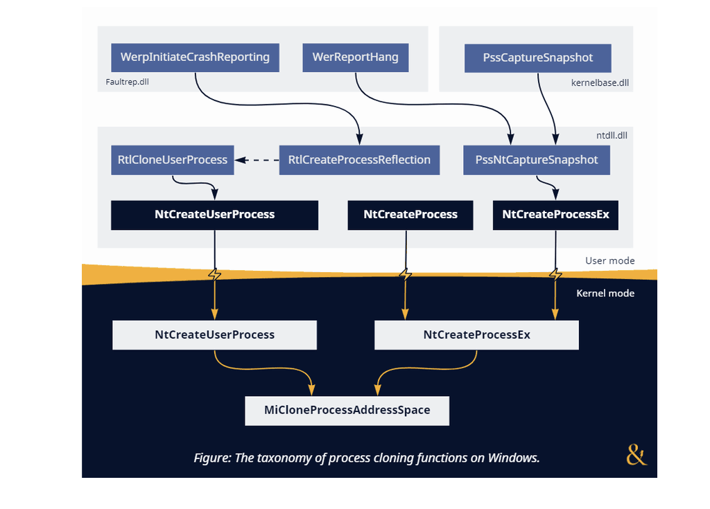 While not everybody knows it, Windows natively offers functionality similar to the famous Unix fork() API. The primary OS mechanism that makes it possible is the support for cloning the address space of a given process. Despite its existence, this feature feels odd for an operating system that went for a completely different design path with process creation. And, as we know from experience in the cybersecurity industry, unusual often means untested, which serves as a great starting point for discovering new attack vectors that rely on abusing edge cases. That’s why we often hear offers from security researchers to weaponize process cloning for offensive purposes, such as stealthy memory dumping [1], [2] and code injection [3]. These ideas get exposure at the top hacking conferences, so there seems to be potential.