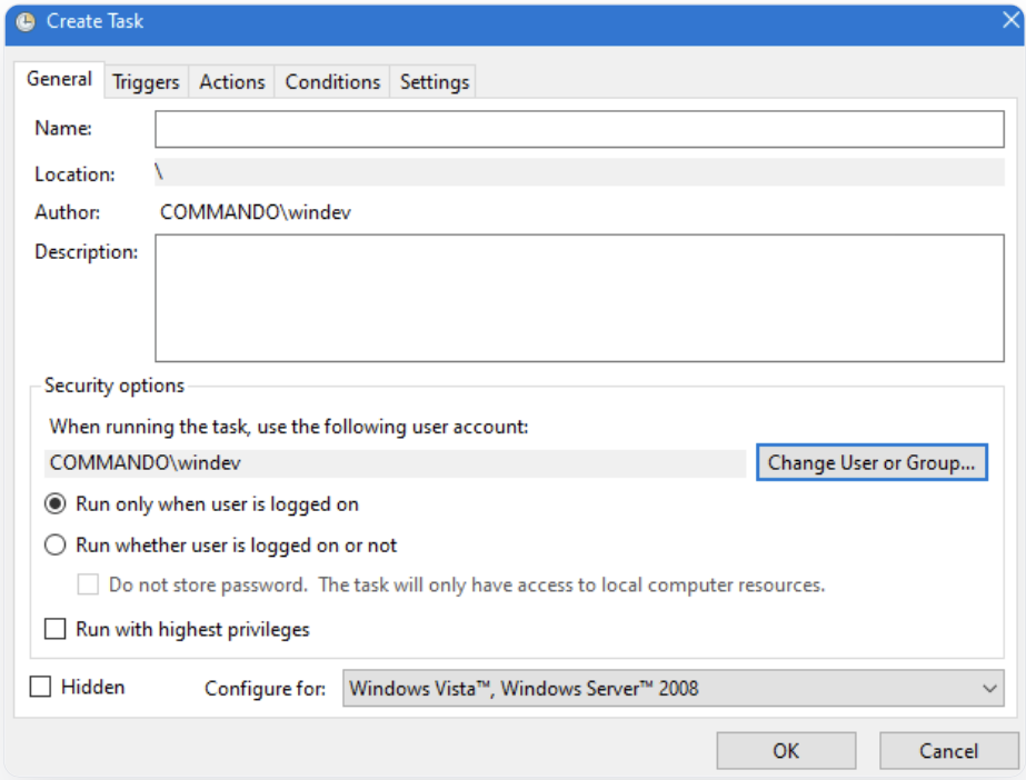 The second mechanism I love is scheduled tasks. The thing with scheduled task is that when creating one, you can specify which user’s account it should run as: