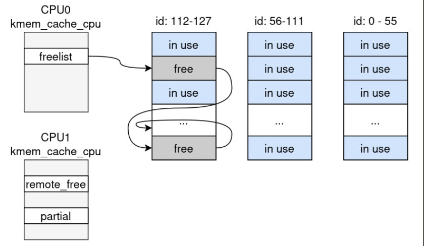 On x86-64, the structure is 72 bytes, so one 4KB slab page holds 56 objects.
