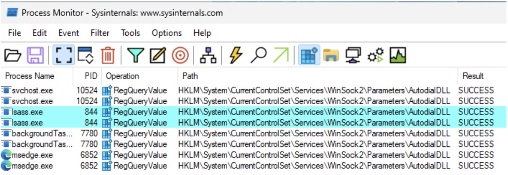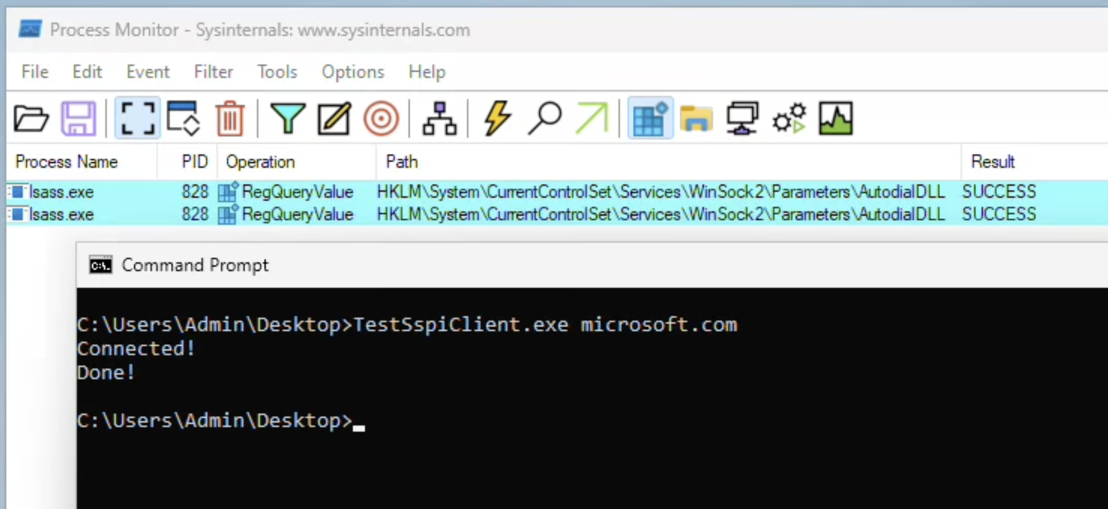 Following that discovery, I created a proof-of-concept application to test this theory, and was able to coerce LSASS to load the Autodial DLL this way.