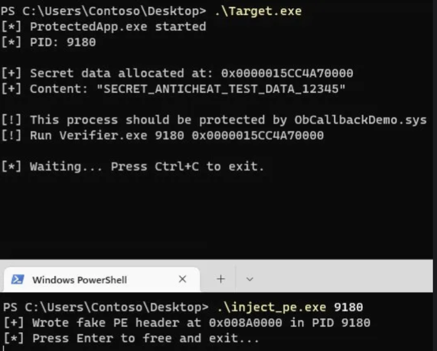 The pre-operation callback receives a POB_PRE_OPERATION_INFORMATION structure. The critical field is Parameters->CreateHandleInformation.DesiredAccess. The callback can strip access rights from the desired access by modifying Parameters->CreateHandleInformation.DesiredAccess before the handle is created. This is how anti-cheats prevent external processes from opening handles to the game process with PROCESS_VM_READor PROCESS_VM_WRITE access.
