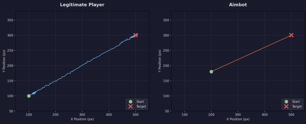 The next-generation threat is aimbots powered by computer vision models that run on the GPU or a secondary computer. These systems use a camera or screen capture to analyze the game frame, identify targets, and move the mouse via hardware (a USB HID device, bypassing software input inspection entirely). The mouse movements they produce can be configured to mimic human motion patterns, making statistical detection much harder.