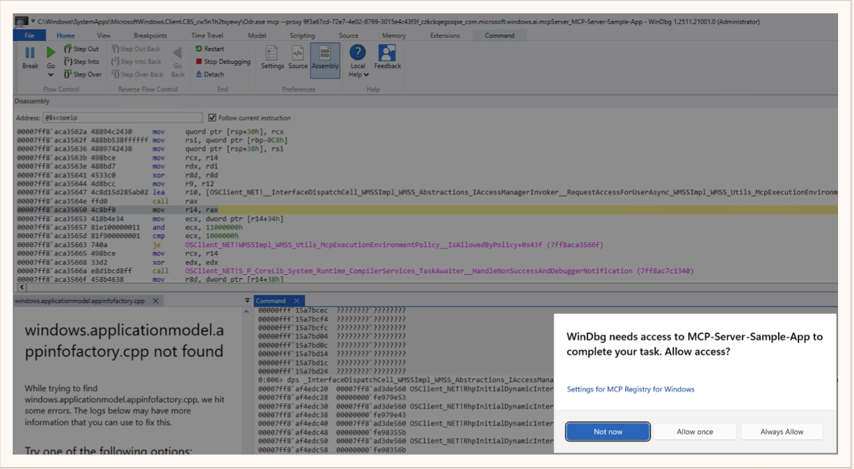 ODR and MCP on Windows is still very much in its infancy, and we can already see a rich feature set which includes WinRT interfaces and more than sufficient logging. Additionally, ODR goes much deeper than what has been documented in this blog post, including around how ODR both registers MCP servers and gates access to system resources by an unauthorized user. It will be very interesting to see how ODR and other AI infrastructure on Windows evolve as these features are ported to general availability.