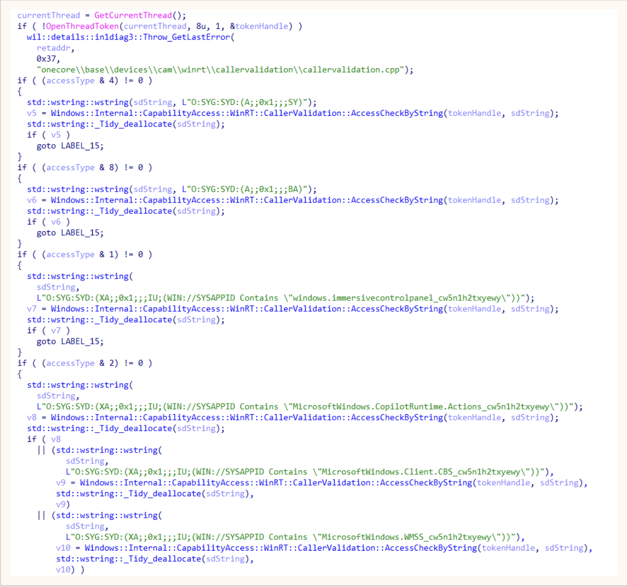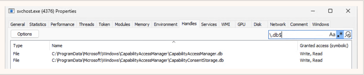 In addition to the undocumented ETW providers just mentioned, Microsoft-Windows-Privacy-Auditing is also leveraged to log additional items of interest in CapabilityAccessManager.dll. The current events are: