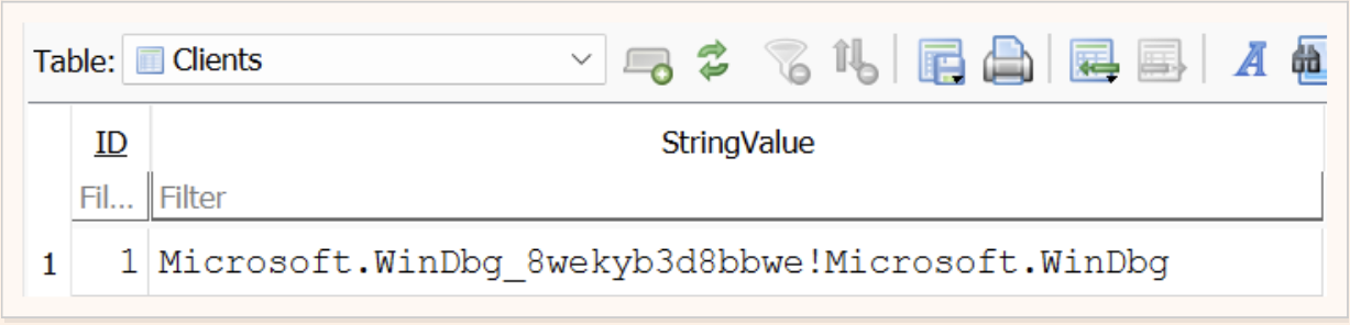 (wchar_t*)0x1ec734e59fc : 0x1ec734e59fc : "Microsoft.WinDbg_8wekyb3d8bbwe!Microsoft.WinDbg" [Type: wchar_t *]