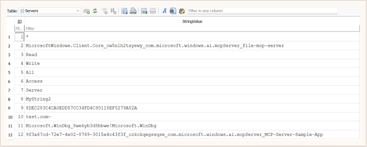 To programmatically enumerate a list of registered MCP servers, one simply needs to reference the documentation for how to register a packaged MCP server via ODR. This documentation states the MCP server must add an application extension in the application’s manifest. An application extension, or AppExtension, is used to identify a group of applications that share resources. In this case, the app extension is named com.microsoft.windows.ai.mcpServer. All the registered MCP servers will therefore specify this app extension in the application’s manifest, allowing ODR a very convenient way to enumerate a list of MCP servers. We can easily achieve the same thing programmatically by using WinRT to display all current applications which have this app extension as part of their packaged app’s manifest.