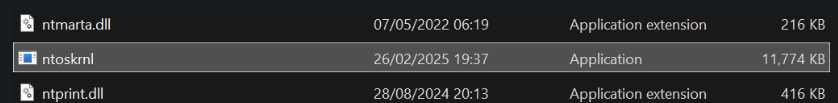 My current favourite reverse engineering tool of choice is Binary Ninja, I love their interface and colours, and I find it easier to navigate than IDA, Ghidra etc. So, where do we start with reversing the kernel? With the kernel image! In C:\Windows\System32 you will find ntoskrnl.exe, this is the kernel!
