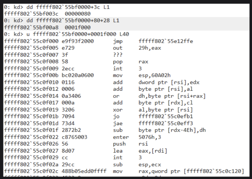 fffff803`7c16f000 jmp fffff803`7c312ffe