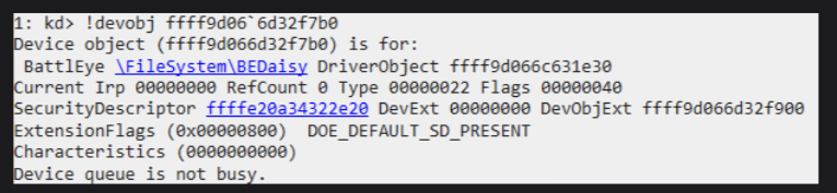 BattlEye \FileSystem\BEDaisy DriverObject ffff9d066c631e30