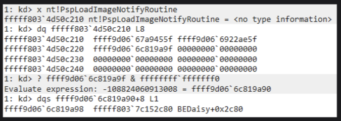 I set a breakpoint on nt!MmLoadSystemImage and caught BEDaisy’s load: