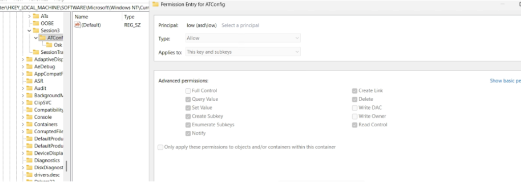 These configurations are then copied to the following registry key in HKLM which is created by winlogon.exe during the login process and grants the logged in user write privileges: