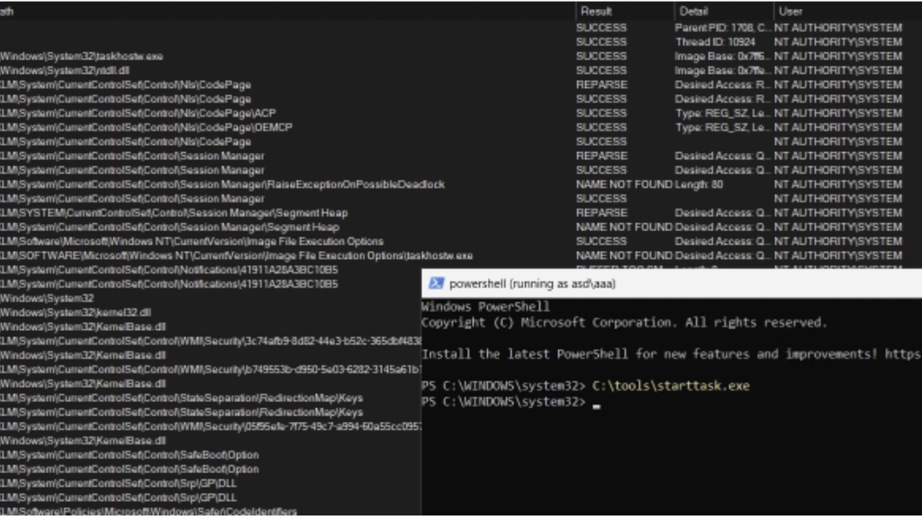 - The task can potentially be started by a low privilege user using the Windows Notification Facility