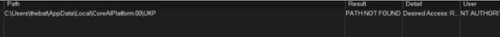 When the task is started it will try to open the C:\Users\%username%\AppData\Local\CoreAIPlatform.00\UKP directory which does not exist by default:
