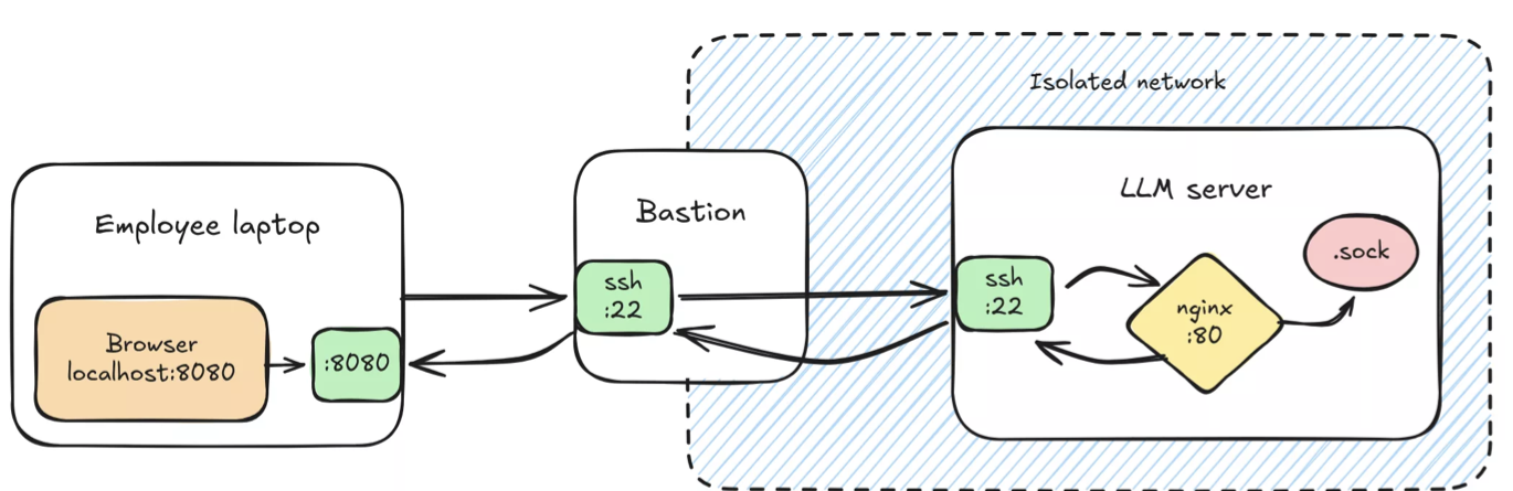 The primary goal of this project is to provide fully air-gapped LLM instances that eliminates network data exfiltration risks. In-depth process isolation design remains the main concern, yet being in a controlled network environment gives us a bit more flexibility regarding assessed deployment convenience trade-offs.