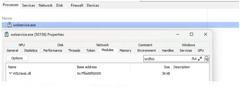 This is only the hooking and logging logic, so if you want to replicate this you need to find a way to load WslHook.dll within wslservice.exe. I leverage SystemInformer for easy testing.
