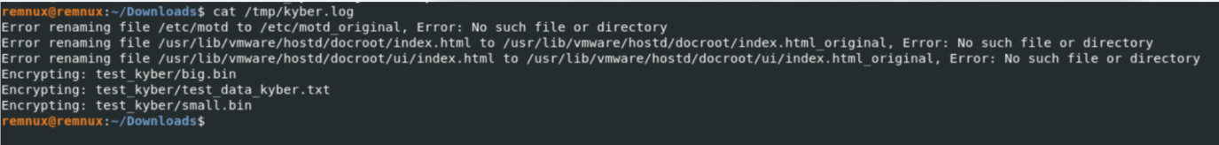 Each file is encrypted with a unique ChaCha8 key. Before encrypting the file, the binary creates a .locksignal file and renames the original to .processing to prevent concurrency. It then checks the last 535 bytes for a metadata trailer containing the markers KYBER, CDTA, and ATDC. If these are present, the file is skipped as already encrypted.
