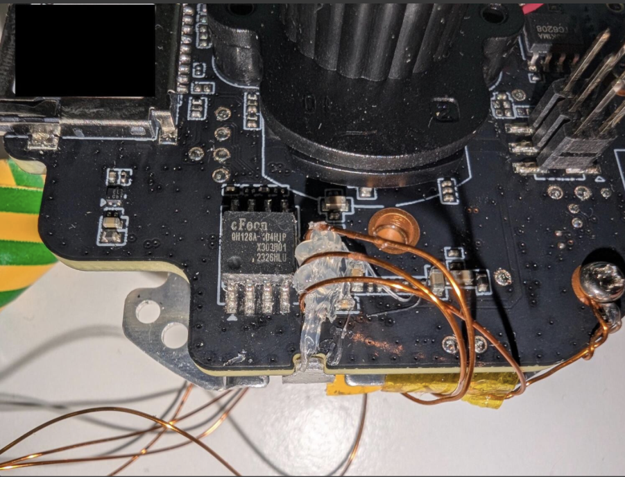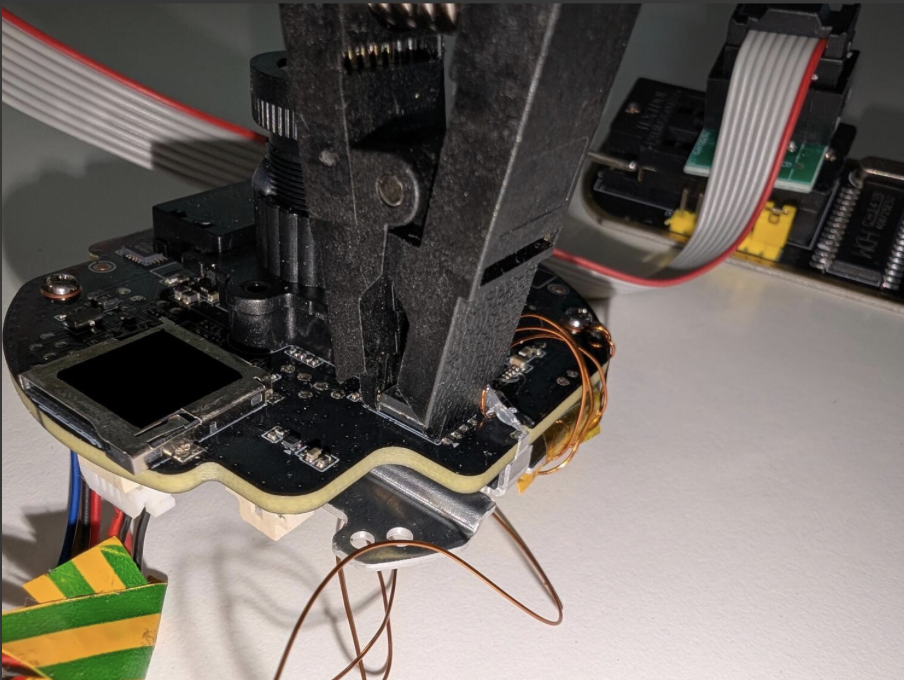 To obtain the actual software running on the device, we dumped the flash with the help of a SOIC-8 clip connected to a flash adapter and the flashrom tool on the PC.