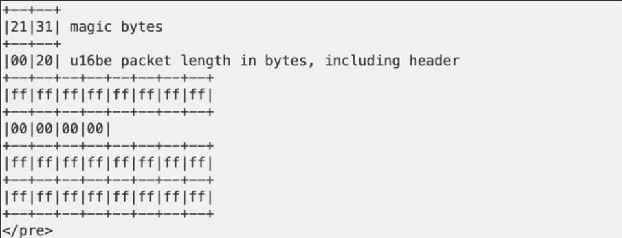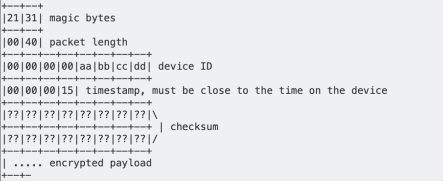 Now that the phone knows the device ID, server timestamp, and token, it can send packets that look like the following: