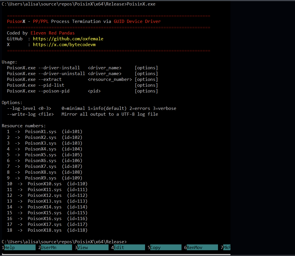 PoisonX1.sys … PoisonX18.sys) - Extracts the first available driver next to the executable
