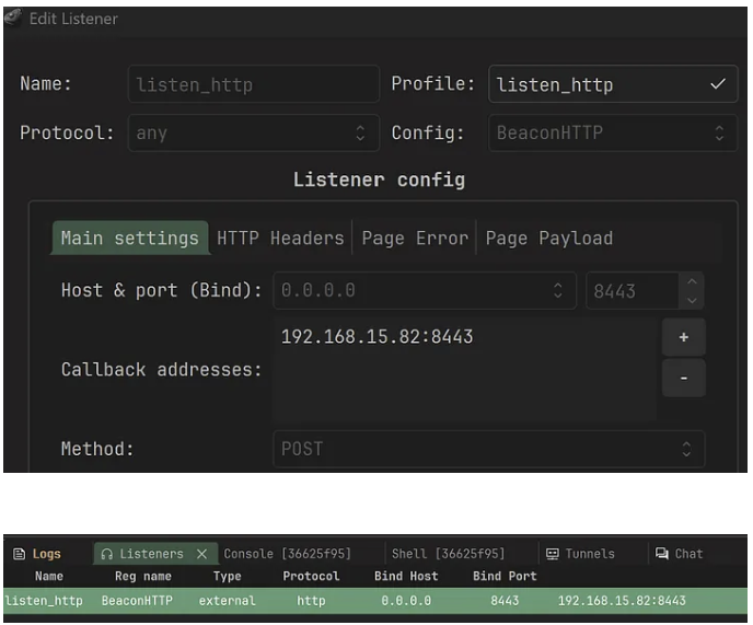 We create a simple HTTP listener in the sessions table. Here the agents will callback to the server IP address on port 8443.