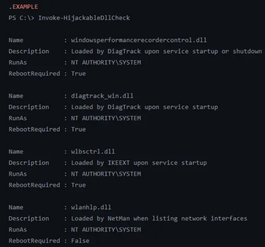 If a writable system path is found or an attacker finds another method to copy or write a file into a system path it’s possible to hijack DLL loading to load an arbitrary DLL. This might already work out of the box on most systems where a writable system path is identified because services load the system environmental path during startup and chances are that there already happened a reboot from when the system path was configured.