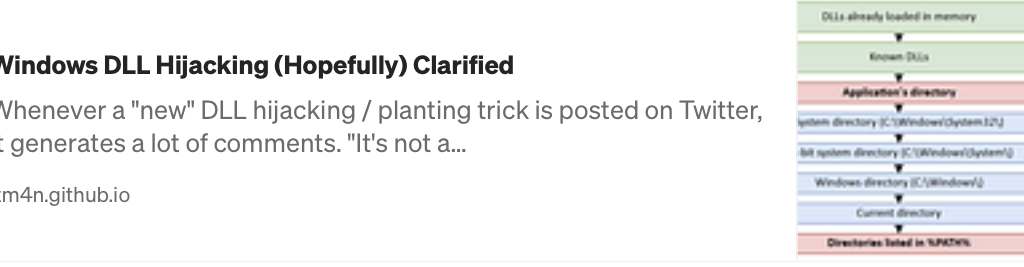 A reboot is required — Let’s say you found a vulnerability that allows you to move a file to an arbitrary location as SYSTEM. Ending your exploit chain with a machine reboot after having successfully planted your DLL would be a shame. You’d rather search for a DLL hijacking you can trigger on demand as a normal user.”