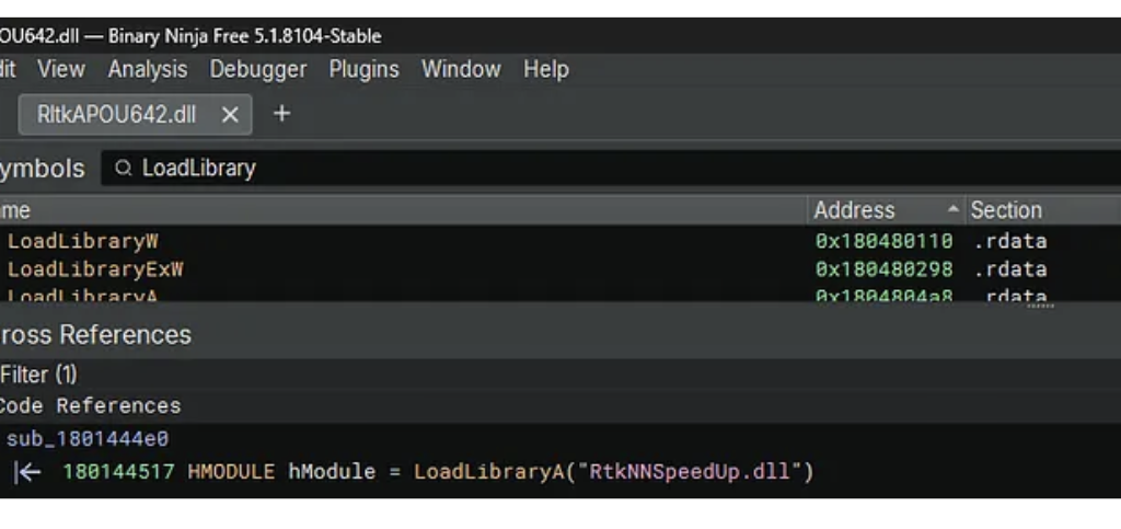 Specifically RtkNNSpeedUp.dll is loaded by RltkAPOU642.dll which is the main Realtek Audio Processing Object DLL for 64-bit systems.